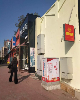 中天街临街门面外墙面贴有小广告,且墙面陈旧脏乱、多处脱落。对此物业公司组织人员清理了外墙牛皮廯,对墙面进行全方位粉刷,整体出新。粉刷后墙面干净、无污迹、无残损。