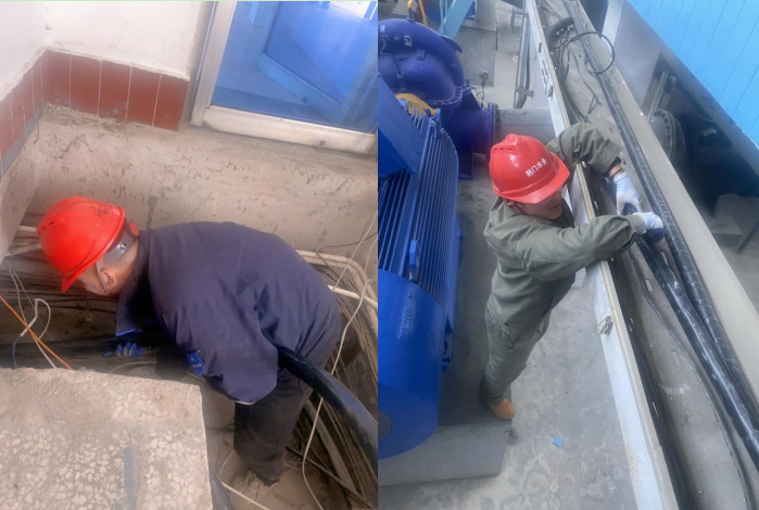 从中压泵房变频柜敷设200多米的电缆至送水泵房泵机,途径1米高的电缆隧道和5米高的电缆夹层,由于隧道内部空间狭小,人在其中只能弯着腰蹲着作业,多处转弯,也给工作带来不小的难度,但大家充分发挥凯发·K8水务人“特别能战斗”的精神,齐心协力,最终历时3小时完成任务。