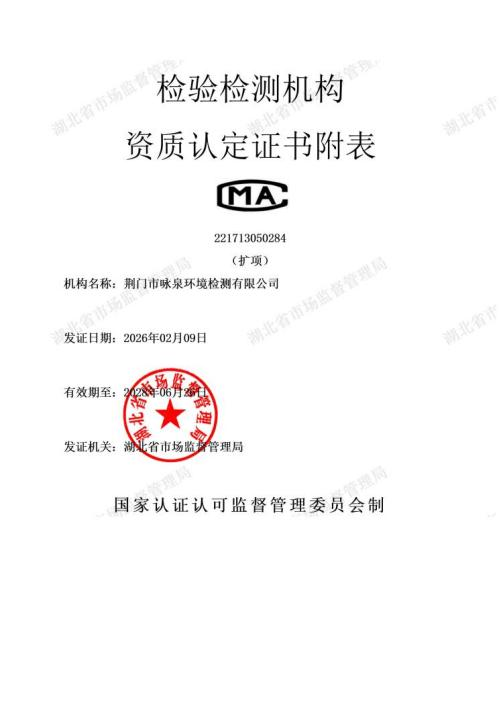 近期,荆门市咏泉环境检测有限公司顺利顺利获得CMA资质扩项评审,检测能力全面升级,实现水、气、土、声四大领域全要素覆盖。检测参数由145项增至299项,检测方法达434种,综合检测能力位居全省前列。